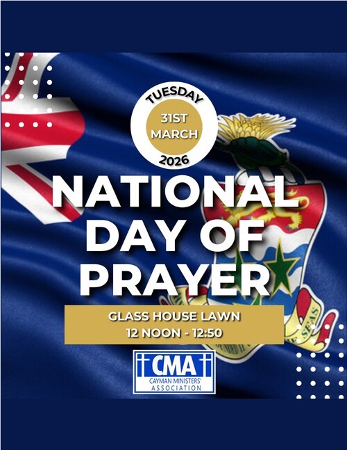 The Cayman Ministers' Association invites you to join them on the lawn of the Glass House on Tuesday, 31 March, from 12 - 12:50 PM to pray for our nation.