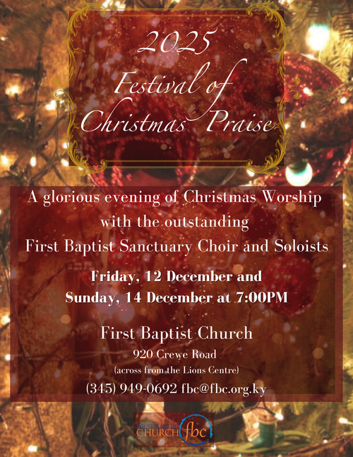 This year's Festival takes place on Friday, 12th December 2025 at 7:00 PM & Sunday, 14th December 2025 at 7:00 PM in the FBC Sanctuary.