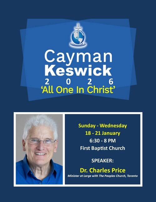 This year’s Cayman Keswick is right around the corner! Let us come together under the banner of “All One In Christ,” taken from Galatians 3:28, to be challenged and blessed by the teaching of Dr. Charles Price, Minister at Large with The Peoples Church, Toronto.